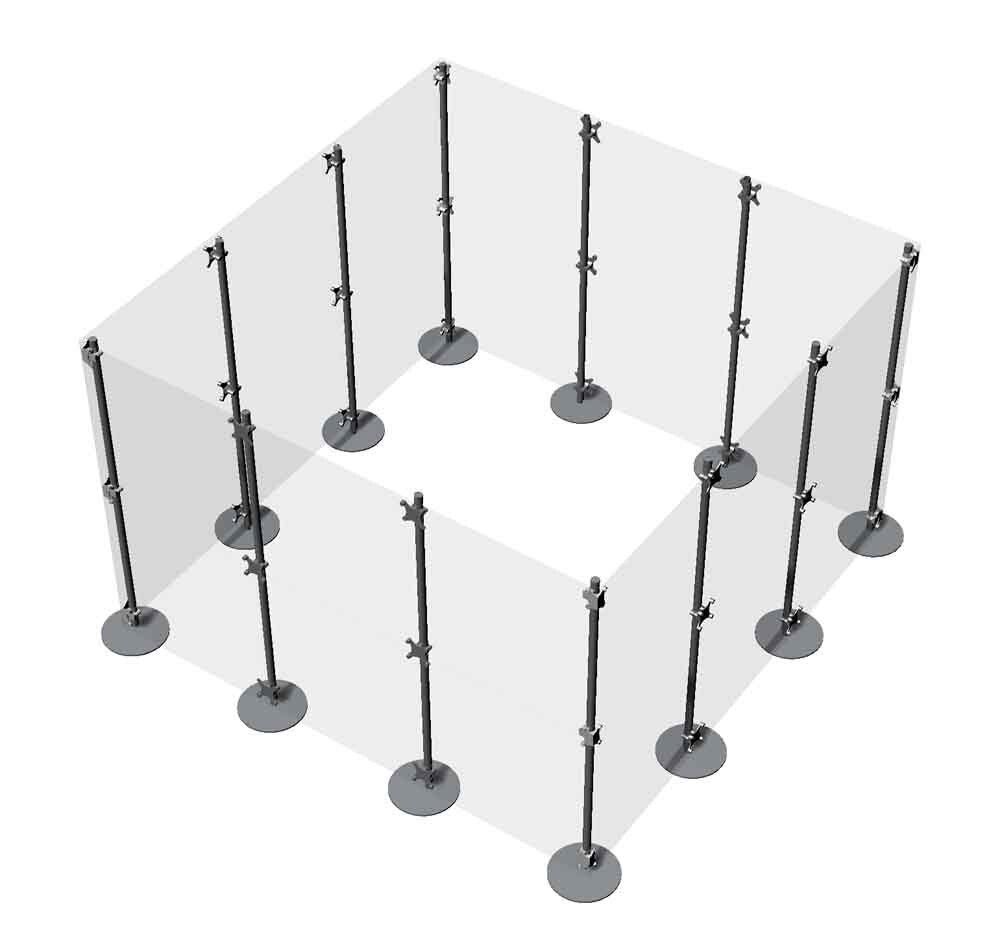 - El sistema modular para exposiciones consta de perfiles metálicos y juntas de fijación. También es adecuado para realizar vitrinas transparentes para mostrar objetos.