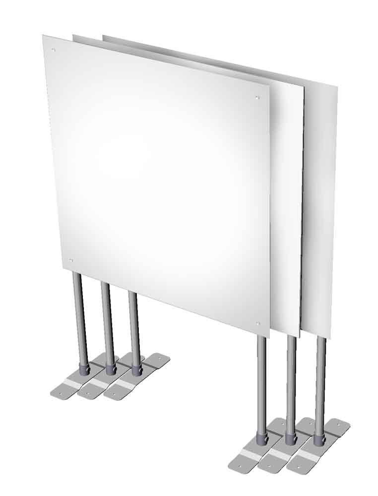 Los montantes están disponibles en diferentes alturas de serie para entrega inmediata, pero también podemos ofrecer alturas personalizadas. Los montantes, así como con los paneles que ofrecemos, son compatibles con los paneles profesionales disponibles en el mercado (policarbonato compacto, nido de abeja, polipropileno, PVC, aluminio laminado y otros paneles compuestos)