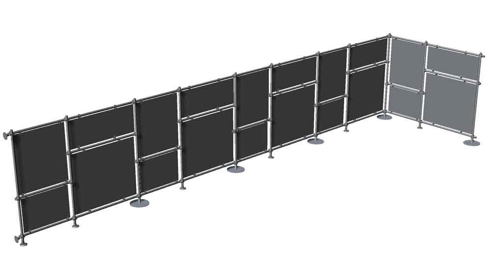 Los módulos creados son autoportantes y se pueden utilizar para exhibir y crear simultáneamente caminos y divisiones dentro de las instalaciones.