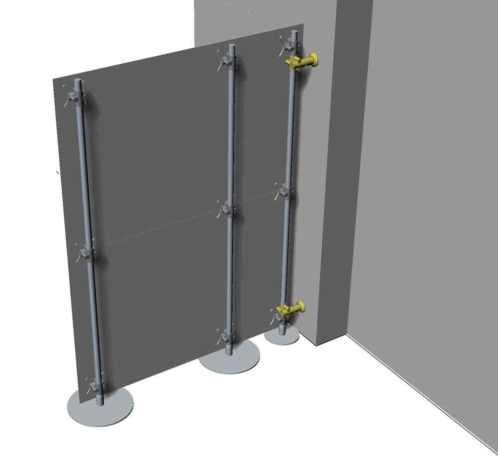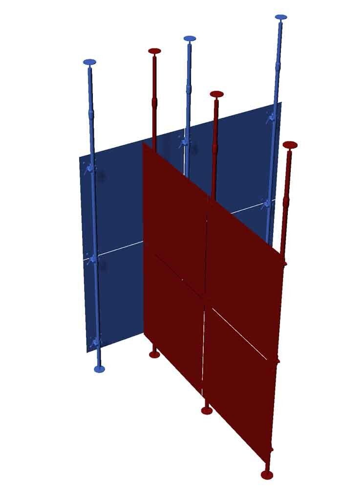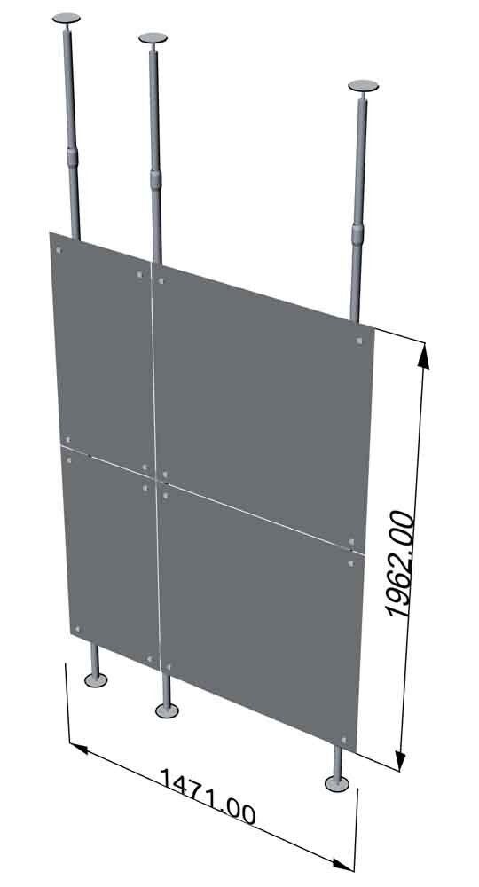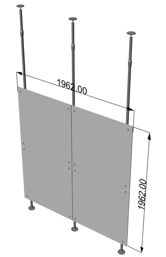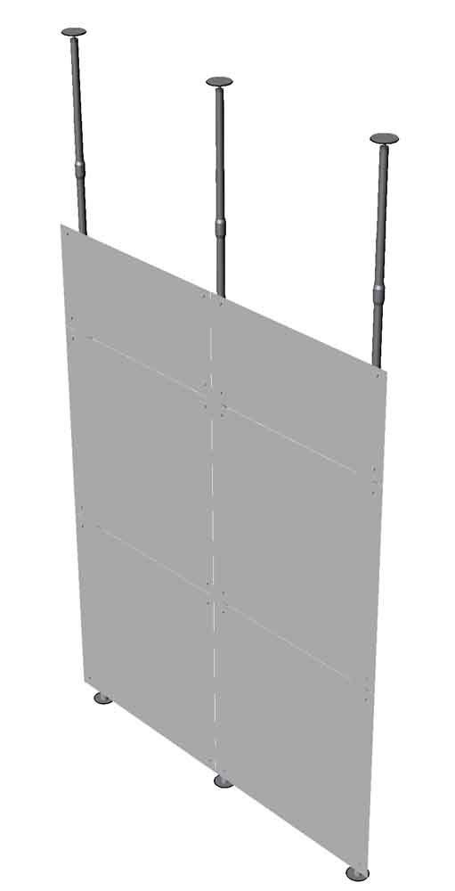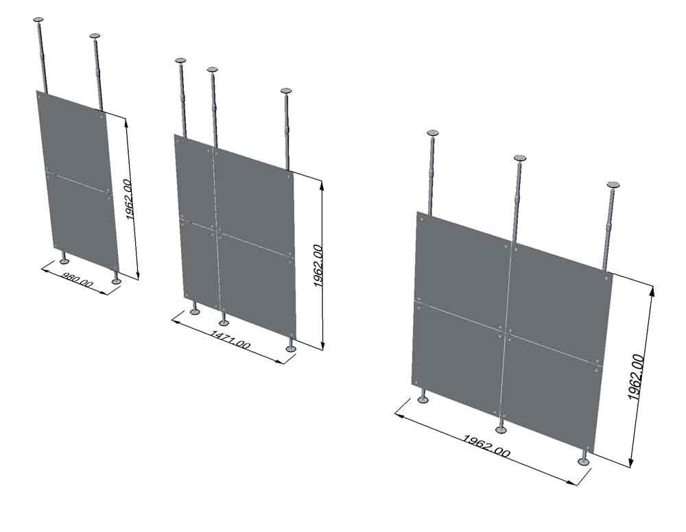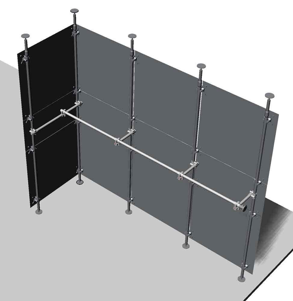 Los montantes se suministran premontados: las conexiones para los paneles ya están colocadas en el tubo, según la distancia de perforación de los paneles. Por lo tanto, el montaje es extremadamente simple y rápido incluso para crear paredes fijas.