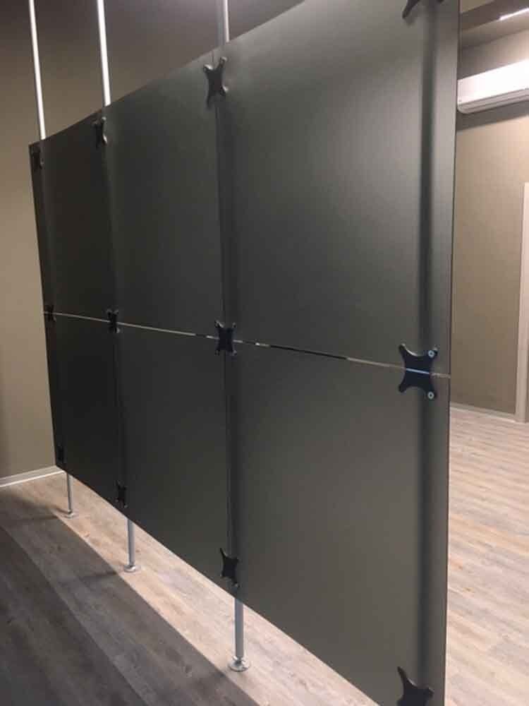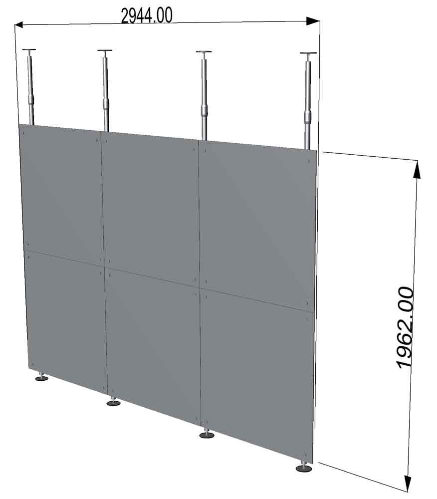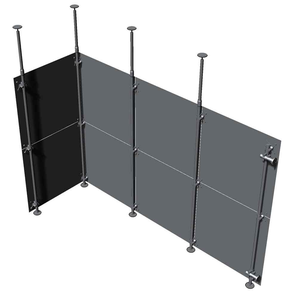 Esta sección contiene ejemplos de muros fijos formados por montantes metálicos telescópicos y paneles de metacrilato