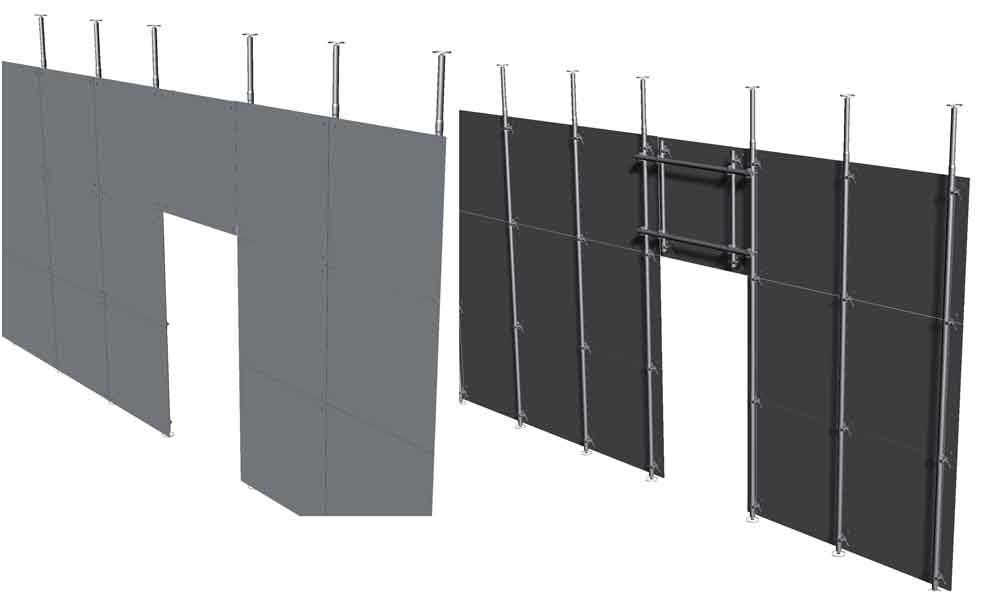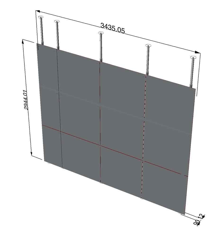 Utilizando montantes de h 3 mt o más, es posible panelar a toda altura para obtener paredes fijas con un relleno completo desde el suelo hasta el techo.