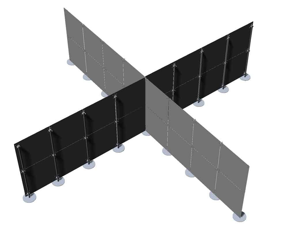 We can also supply walls with side wings in case there is the need to create L-shaped or U-shaped structures