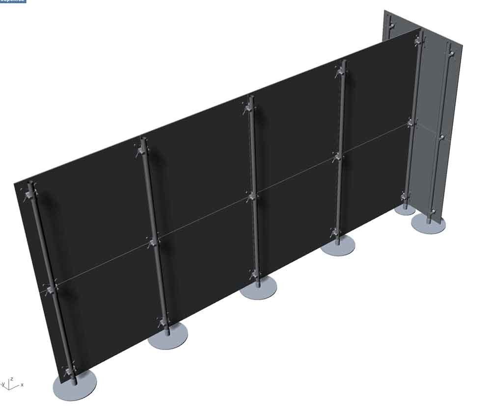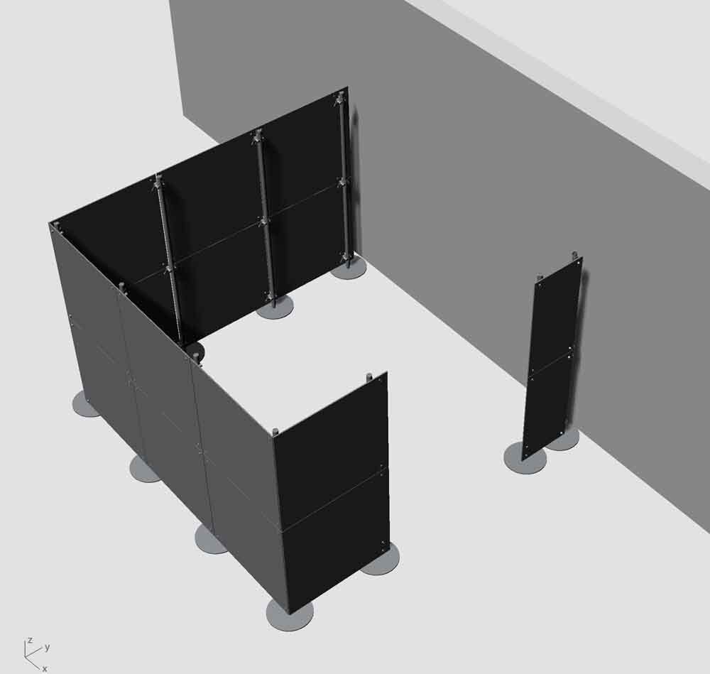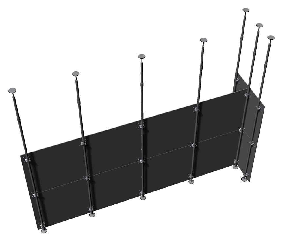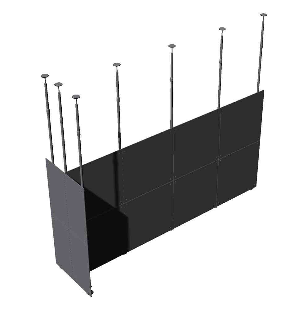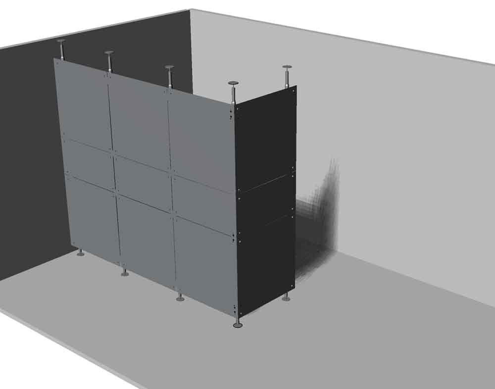 - booths for aesthetics box temporary offices exhibition frames for negotiating reserved areas within open space offices (for example to screen the coffee area or printer area) to create temporary meeting rooms at the end of the room to obtain multiple workstations in small offices dimensions to shield the operational area from the sales area within craft workshops to create the storage / warehouse area within shops that are deprived of it to create a "room within the room" in open space premises to create self-supporting fences for display of large objects (cars, machinery, etc.)