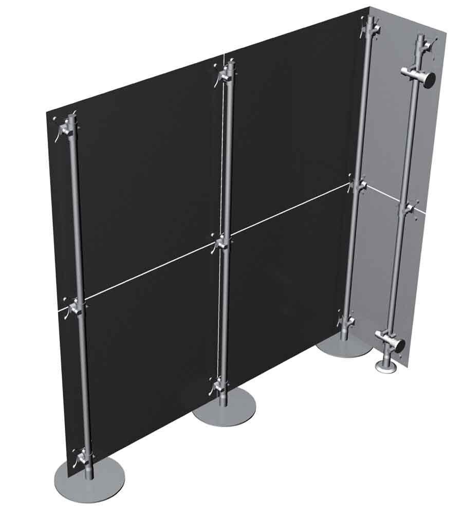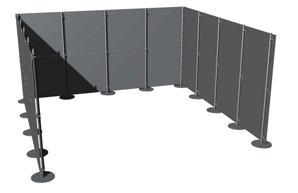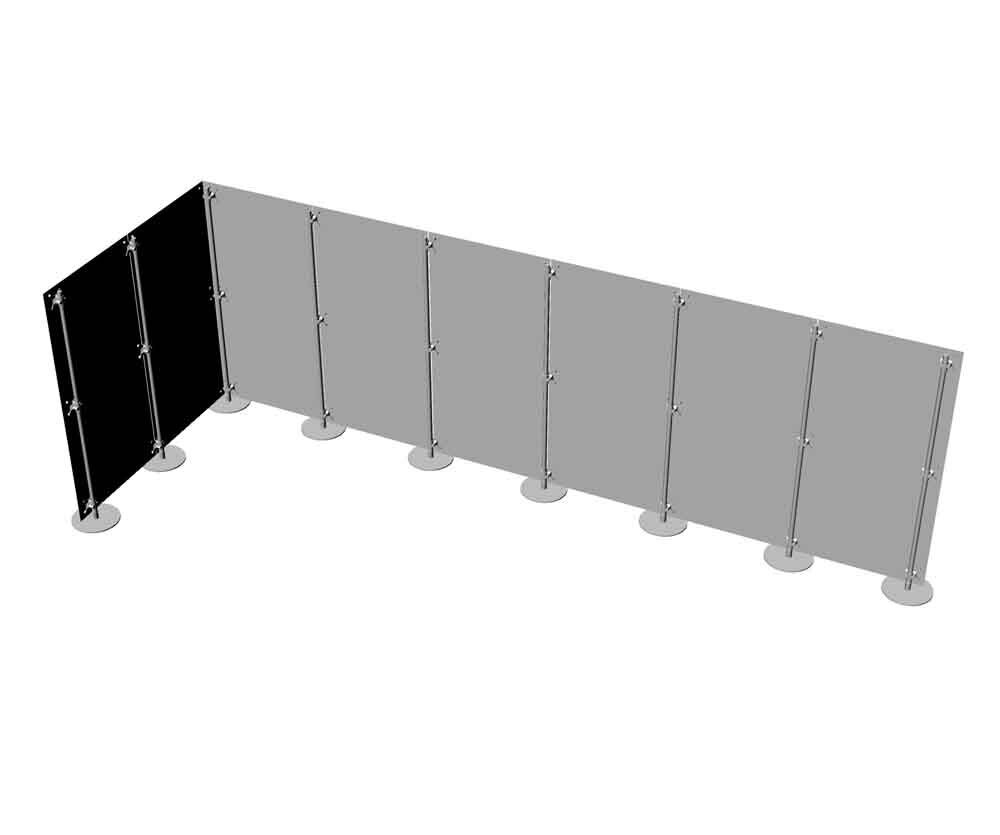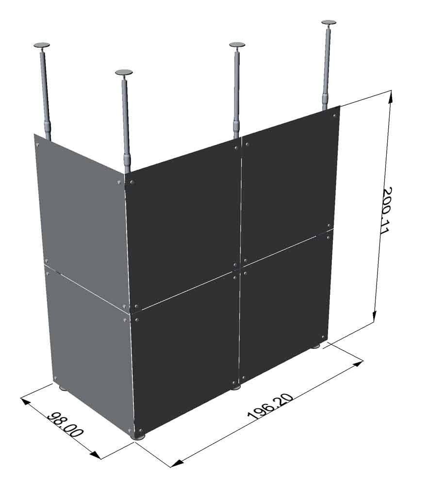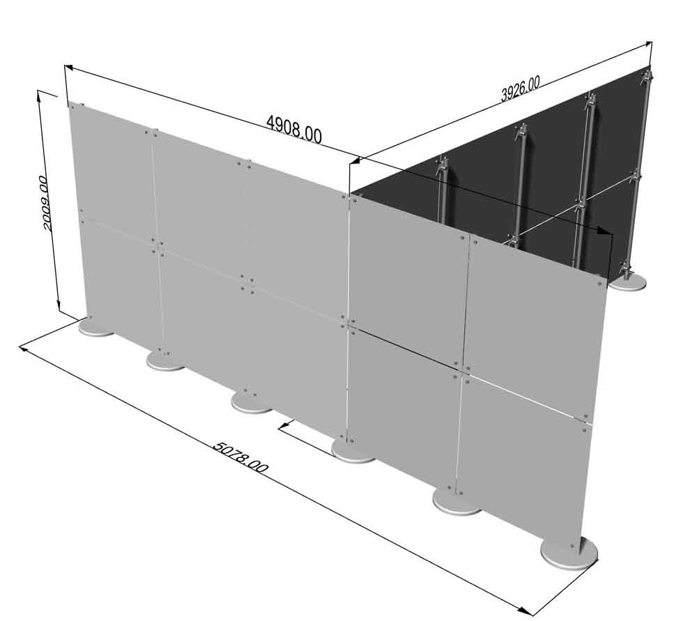 - booths for aesthetics box temporary offices exhibition frames for negotiating reserved areas within open space offices (for example to screen the coffee area or printer area) to create temporary meeting rooms at the end of the room to obtain multiple workstations in small offices dimensions to shield the operational area from the sales area within craft workshops to create the storage / warehouse area within shops that are deprived of it to create a "room within the room" in open space premises to create self-supporting fences for display of large objects (cars, machinery, etc.)