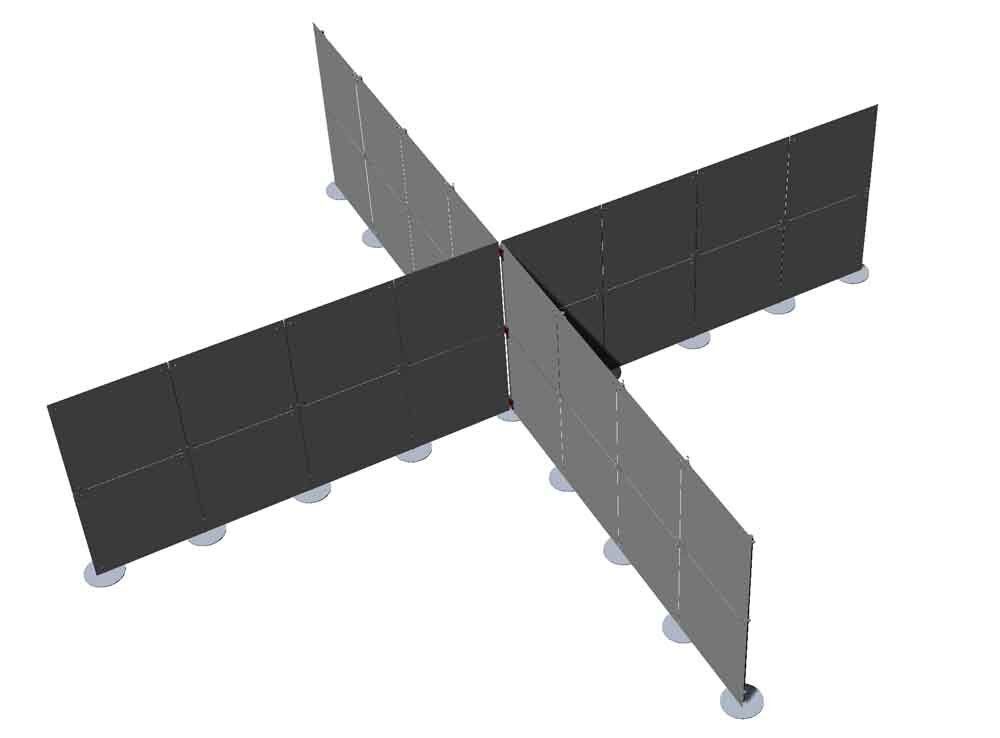 Among others, the 90 ° angled spoke allows for the creation of corner movable walls: