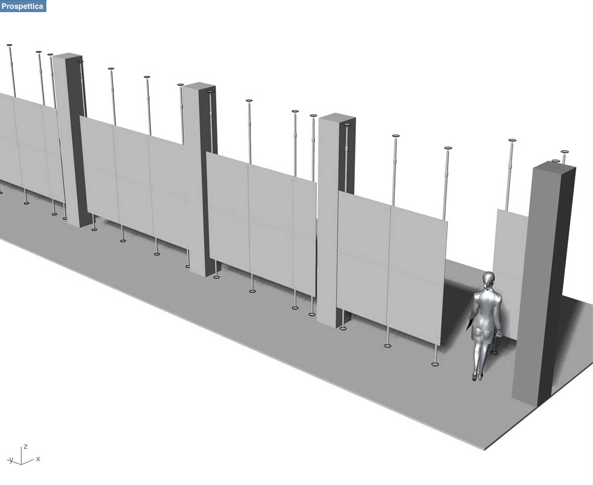 Our panels are also useful for creating temporary exhibitions inside the school: the dividing panels can be used as panels for exhibitions; the aluminum structures are self-supporting and serve both as partitions and as display walls. The different modules can be combined in such a way as to create paths: it is possible to create mobile partition walls in the shape of "L", "U", "Z", "T" or "X" , so as to create the most suitable configuration for the type of event to be set up.