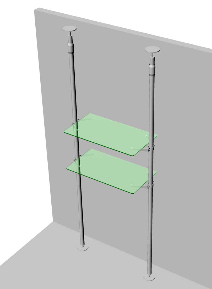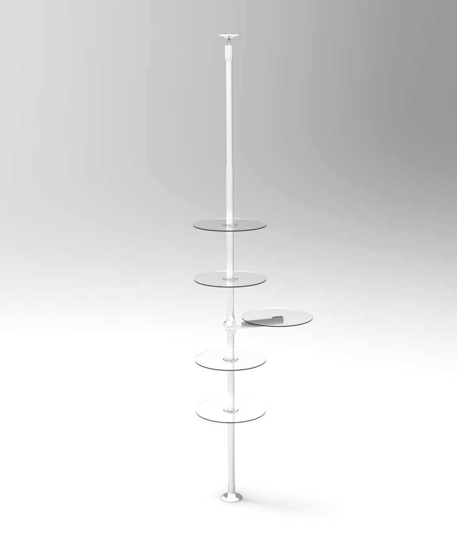 - telescopic uprights: this type of upright is extendable and works "under pressure" between floor and ceiling. It is an aesthetically very elegant solution, which gives the possibility to safely install the furniture anywhere in the room (even in the center of the rooms). In order to install this type of upright, the slab must be made of concrete; on the other hand, it cannot be used if there is a suspended / supported false ceiling: in this case it will be necessary to drill the false ceiling and intercept the reinforced concrete slab. Telescopic pedestals are available in different models (with a different extension capacity). Also in this case we can create customized uprights (with a maximum extension of 340 cm).