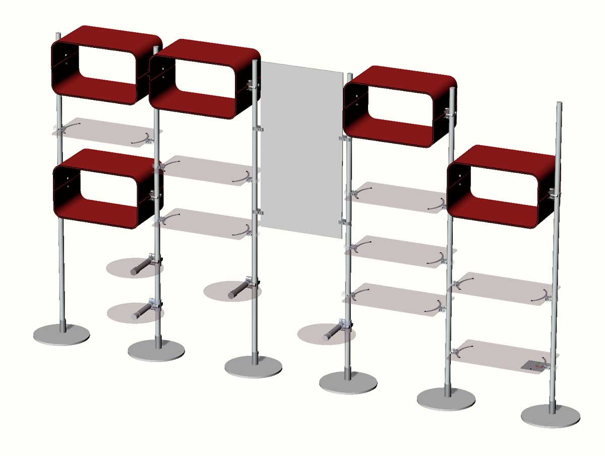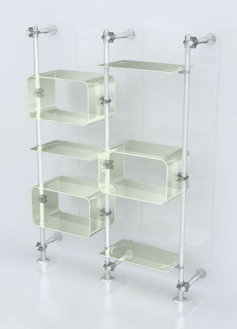 - A furnishing system based on repeatable modules allows you, if you wish, to design and install your shop by yourself, without using specialized personnel and therefore with much lower costs than a totally customized fixed furniture.