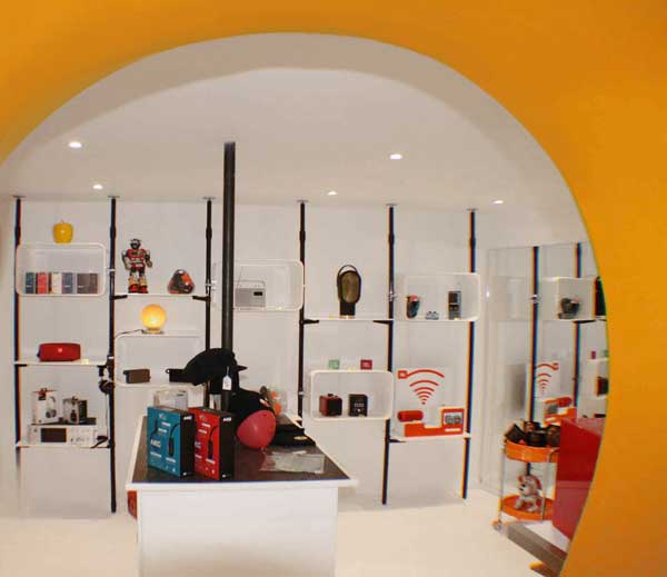 Un grande specchio campeggia sul fondo del negozio, perché << I giovani, quando acquistano delle cuffie , amano specchiarsi!>> assicura Frezet.
